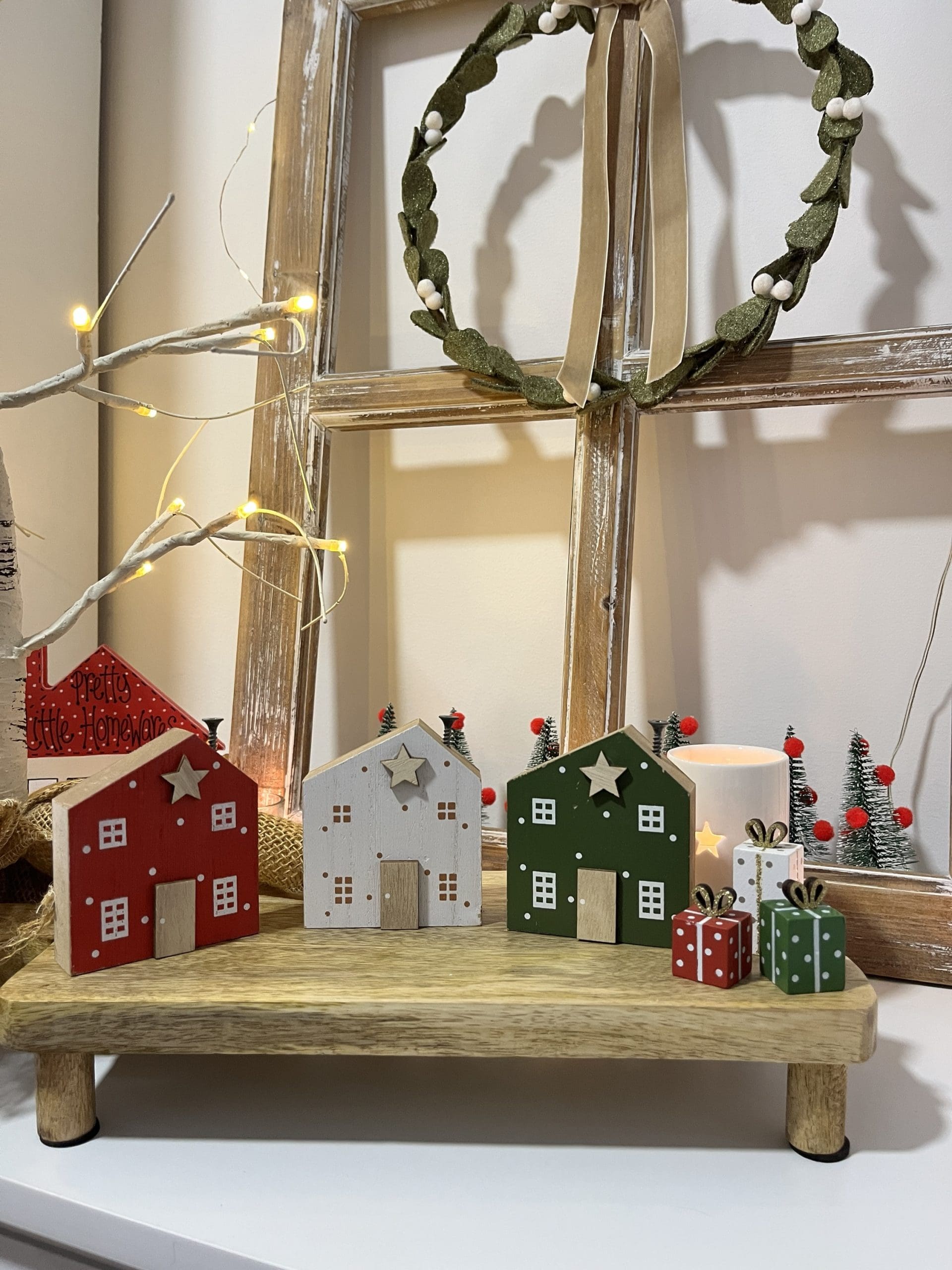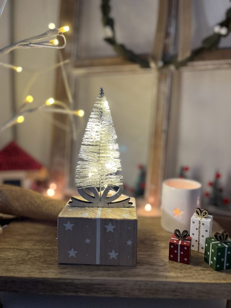 Wooden Present With Bristle LED Tree