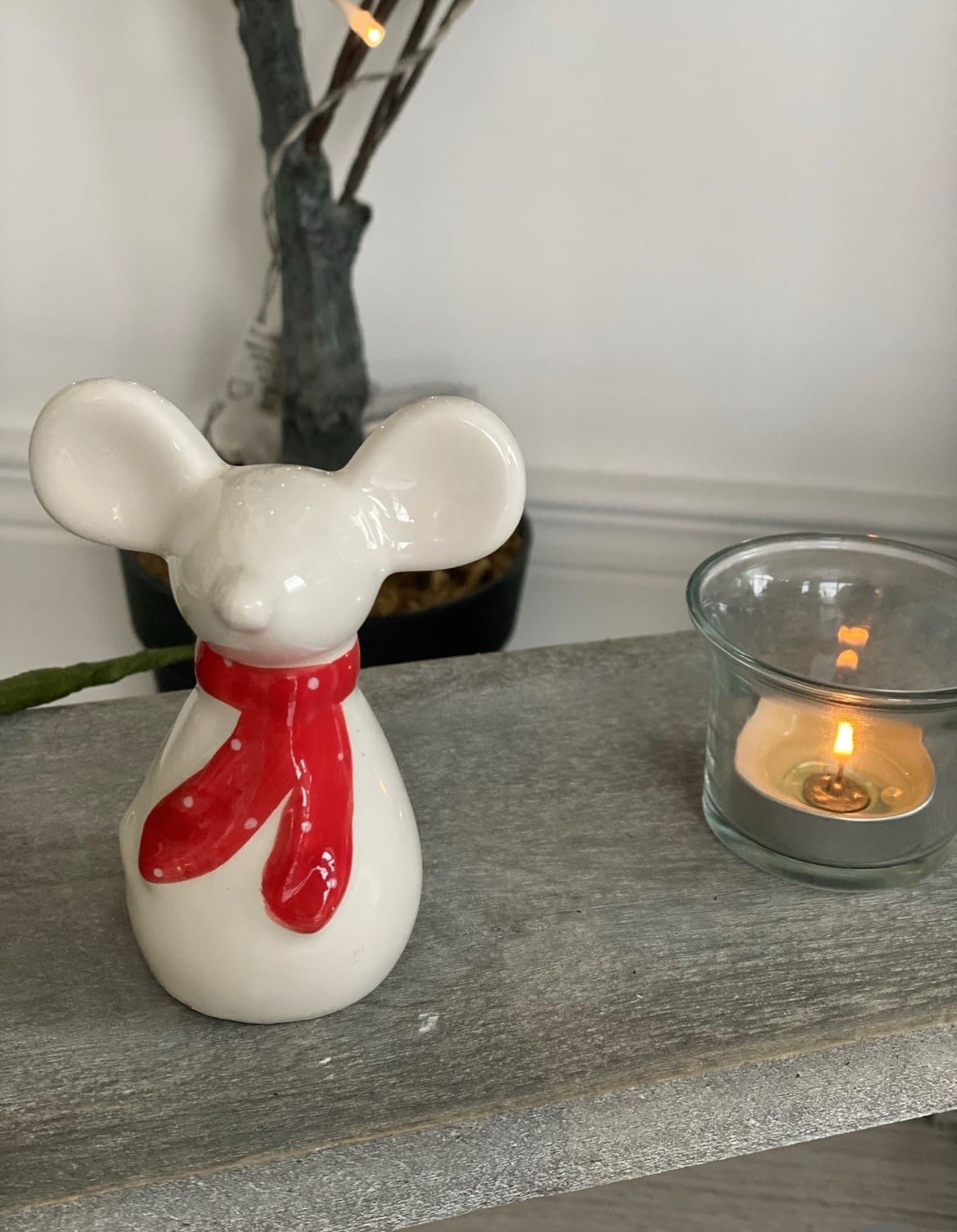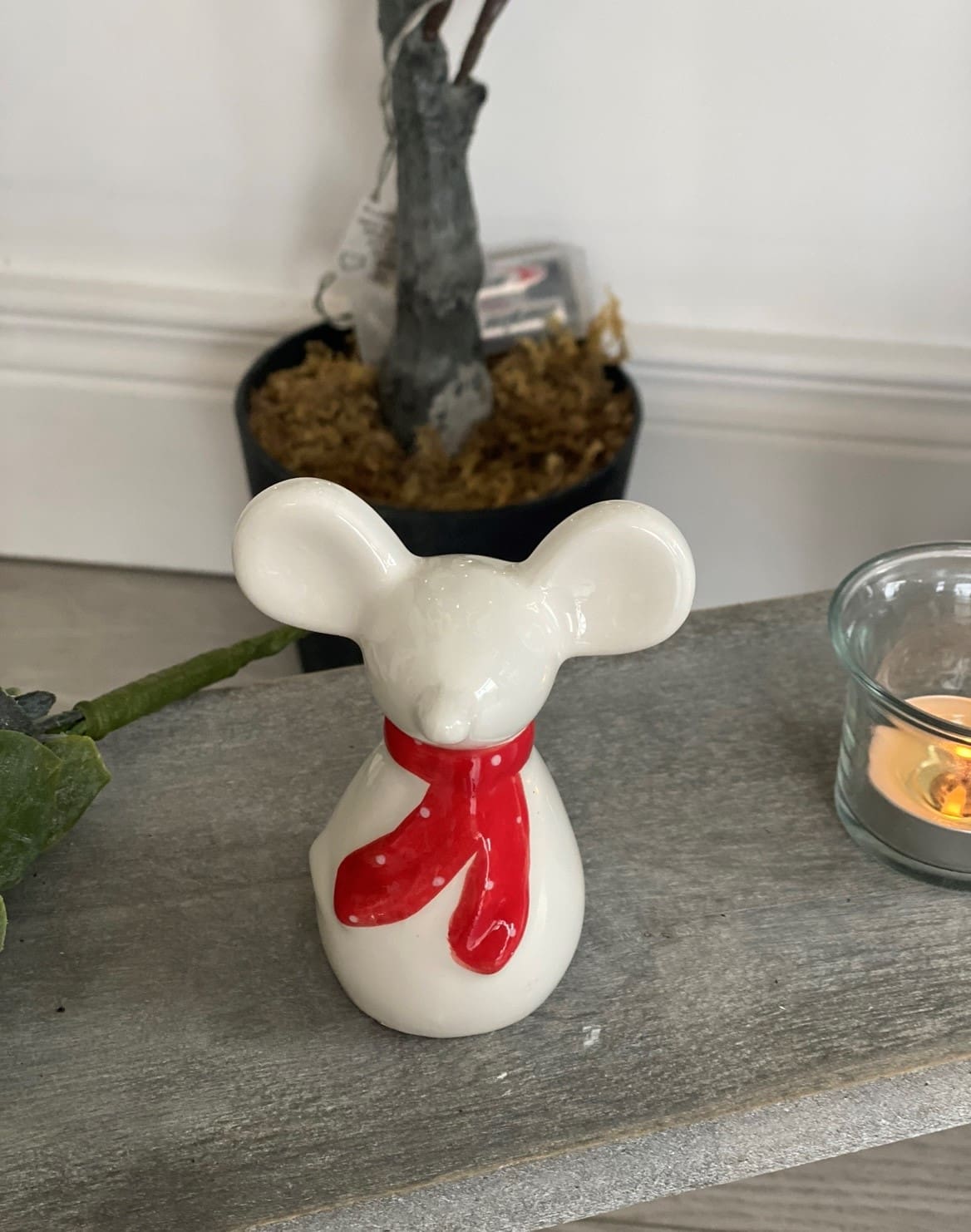 A charming little white ceramic mouse decoration, suitable for any themed home space at Christmas Time