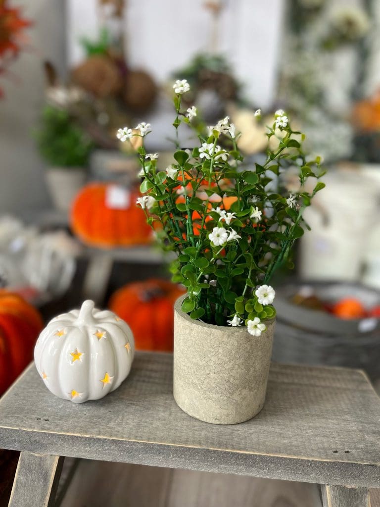 Add some faux greenery to your home with this contemporary stone planter complete with a green plant. Perfect if you’re wanting to add a modern touch to your home.