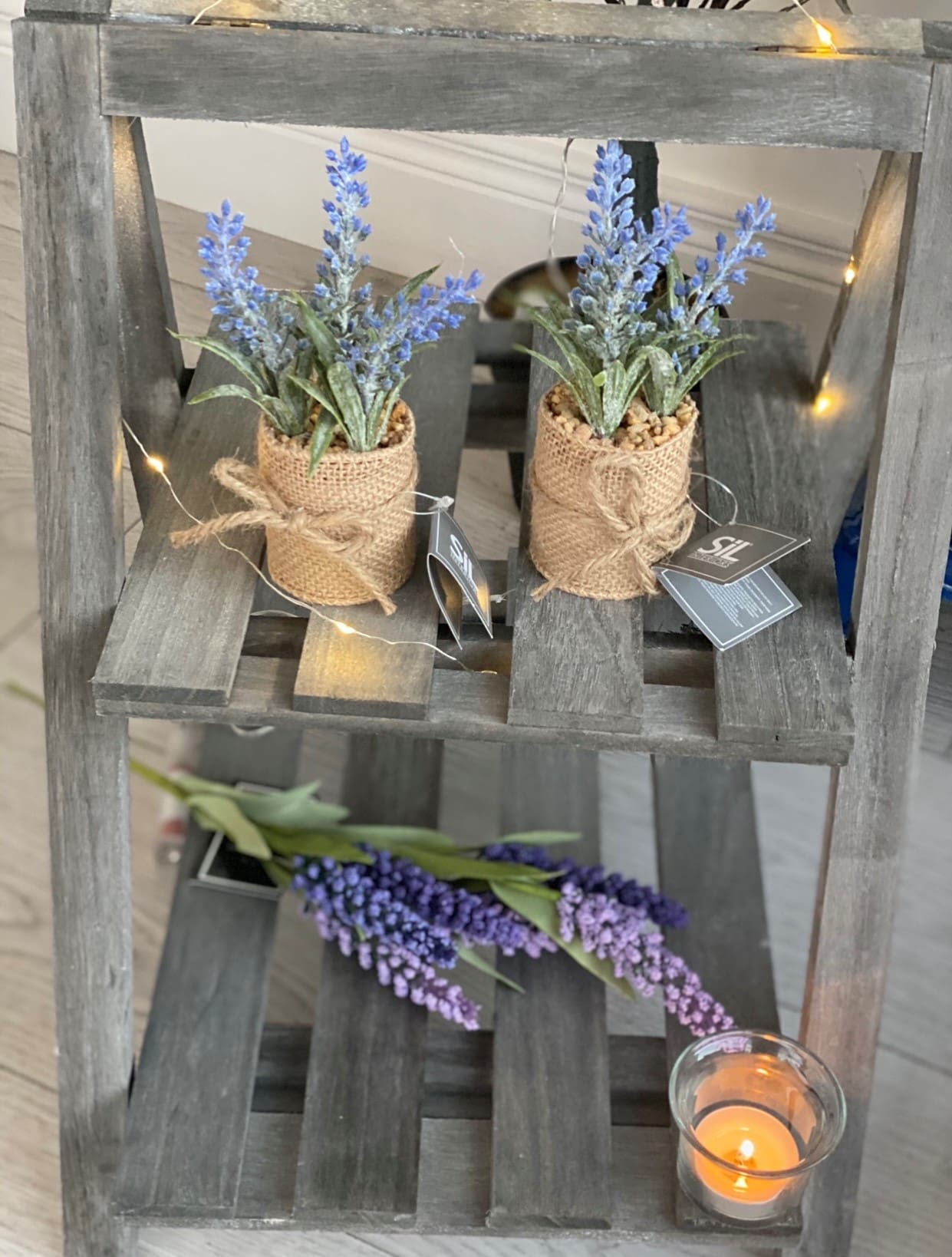 Artificial Lavender Plant In a Pot Wrapped In Hessian