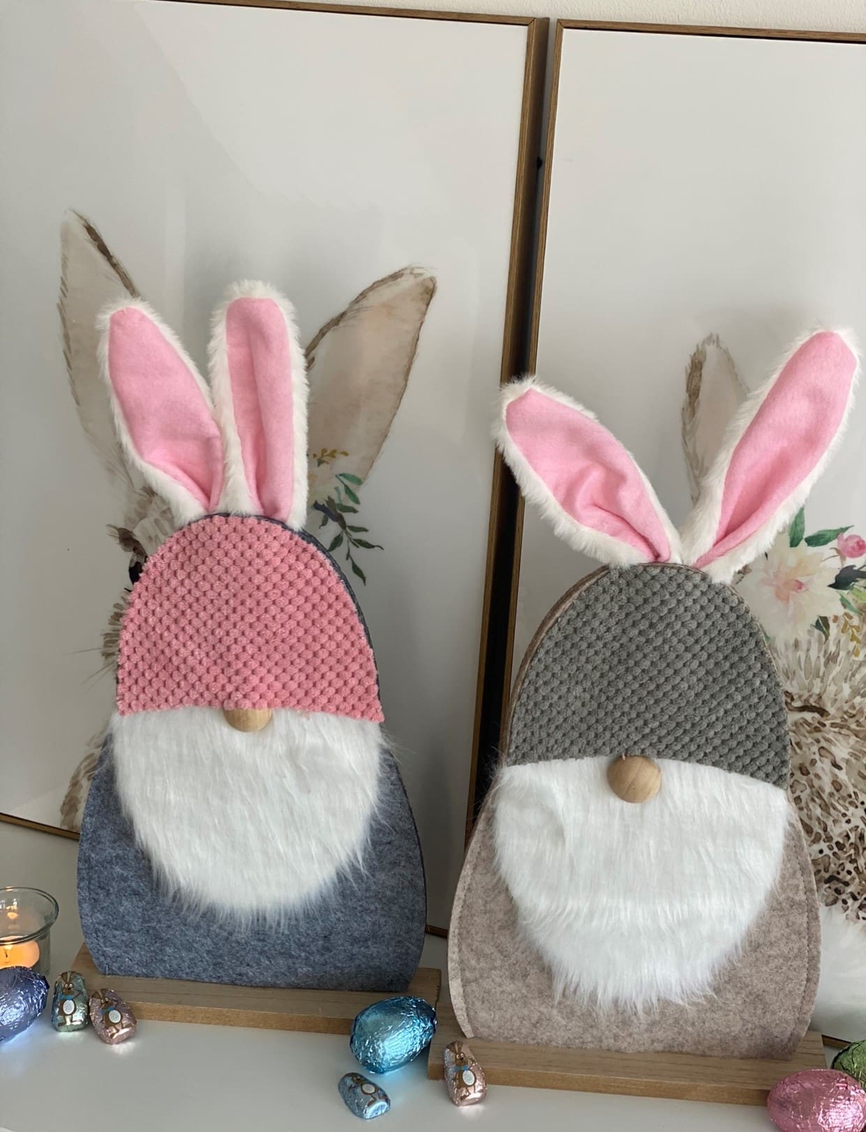 An alternative version to your generic Easter bunny! Two different colours – pink hat and grey hat. Pink Hat Grey Hat