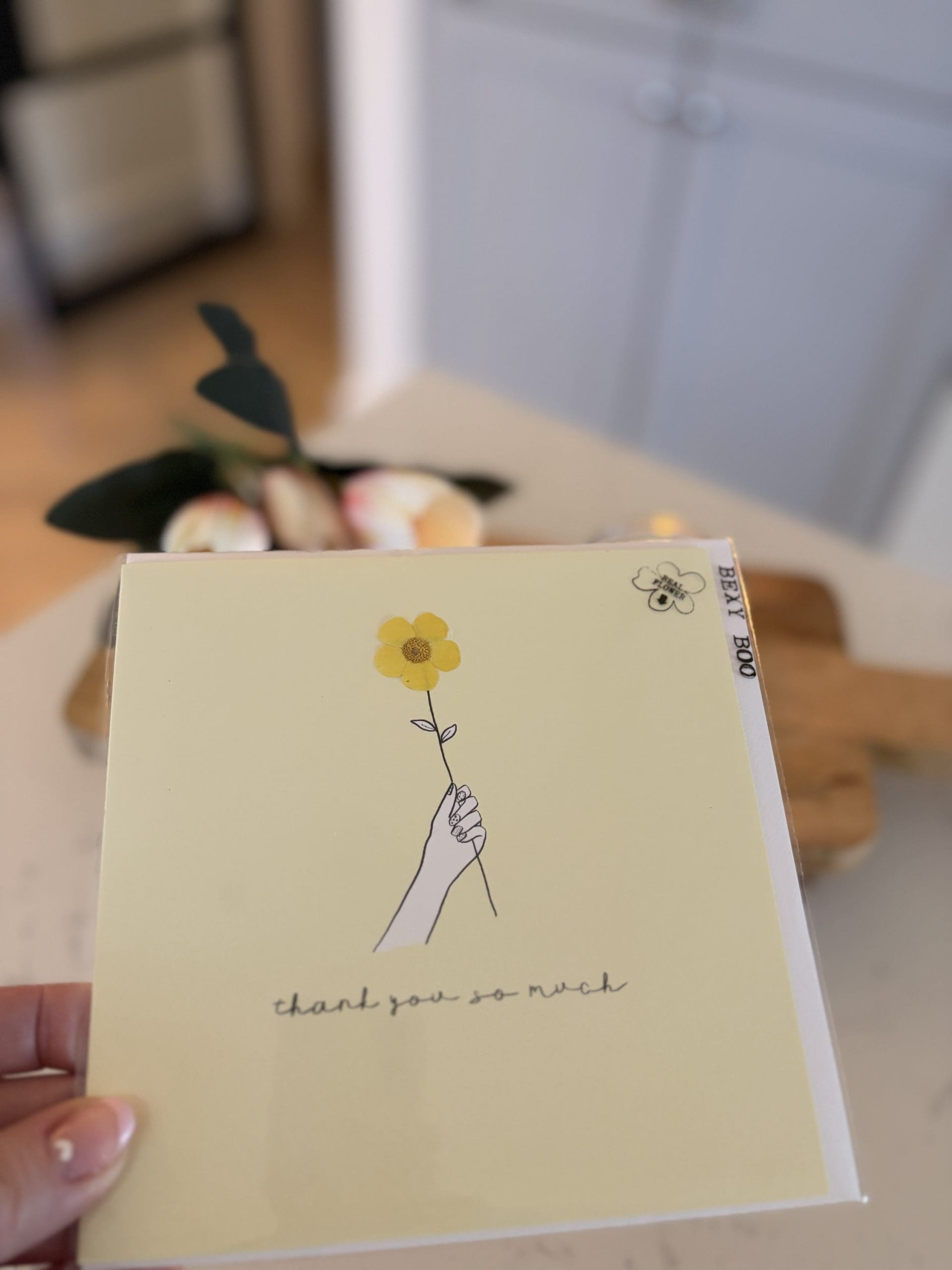 Thinking Of You Greeting Card With A Dried Pressed Flower, 15cm ( Blank Inside )