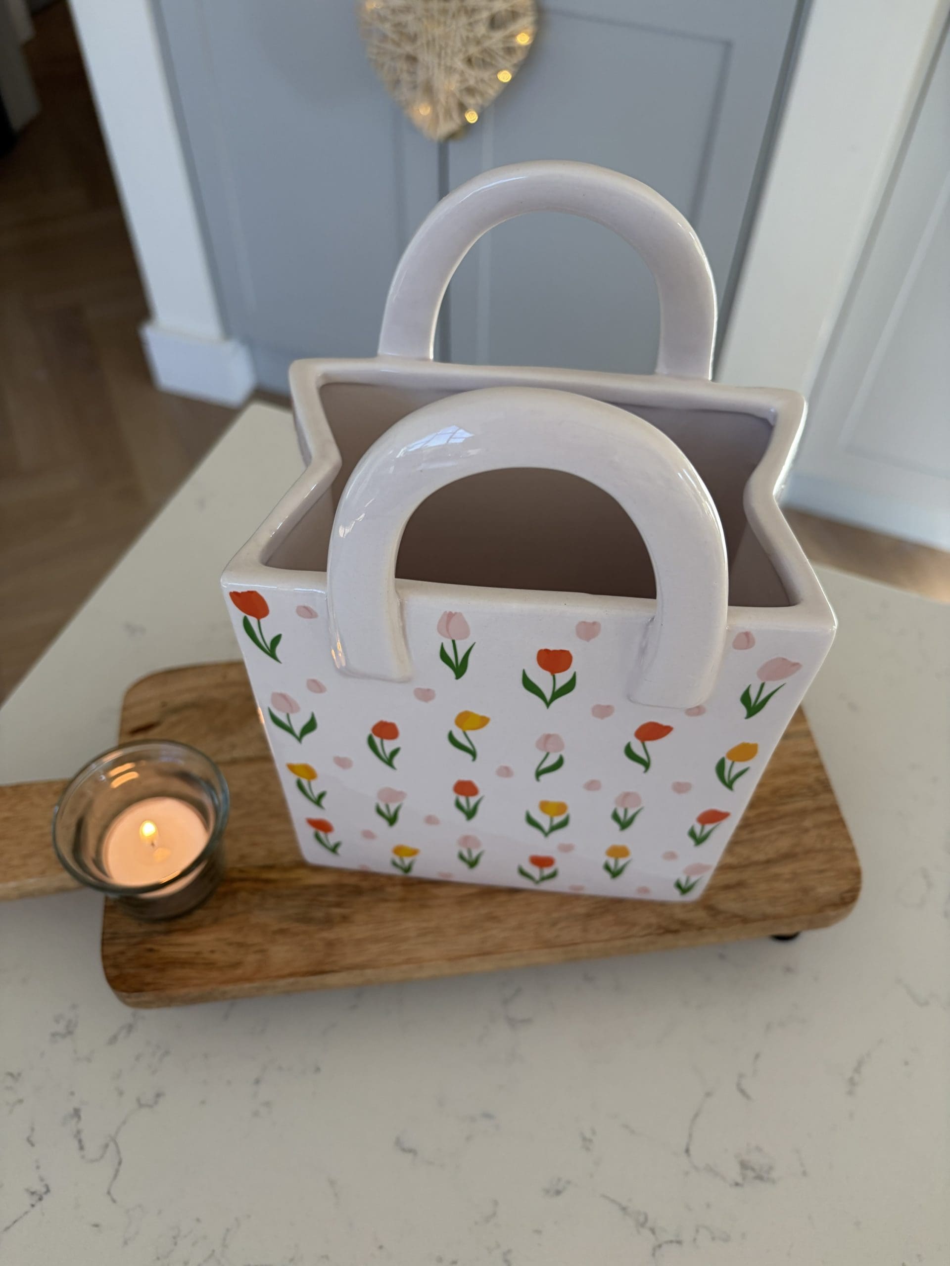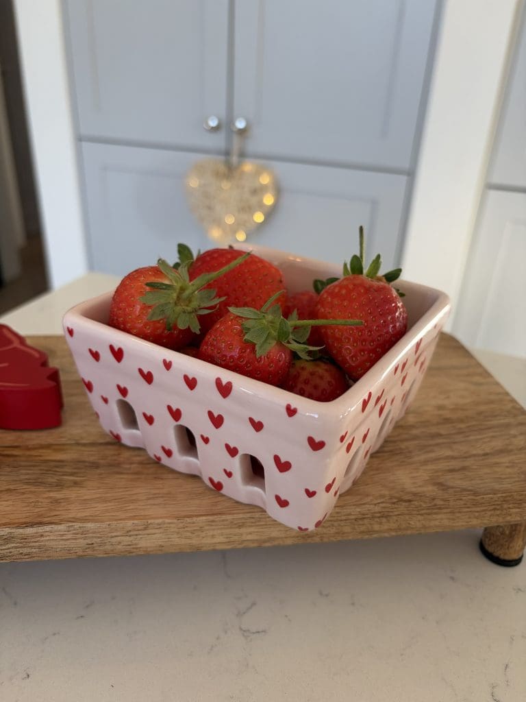 Pink Heart Print Ceramic Strawberry Basket - H5.9cm x W11.7cm x D11.7cm