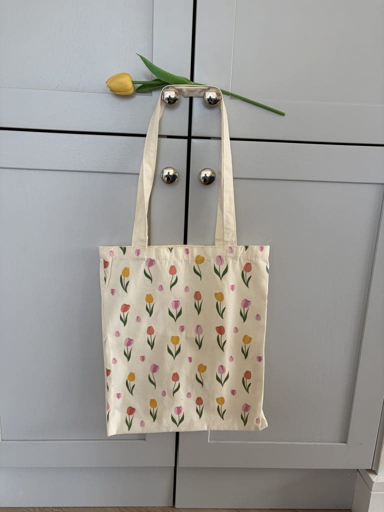 Tulip Print Polycotton Tote Bag, Size: H40cm x W33cm x D0.5cm