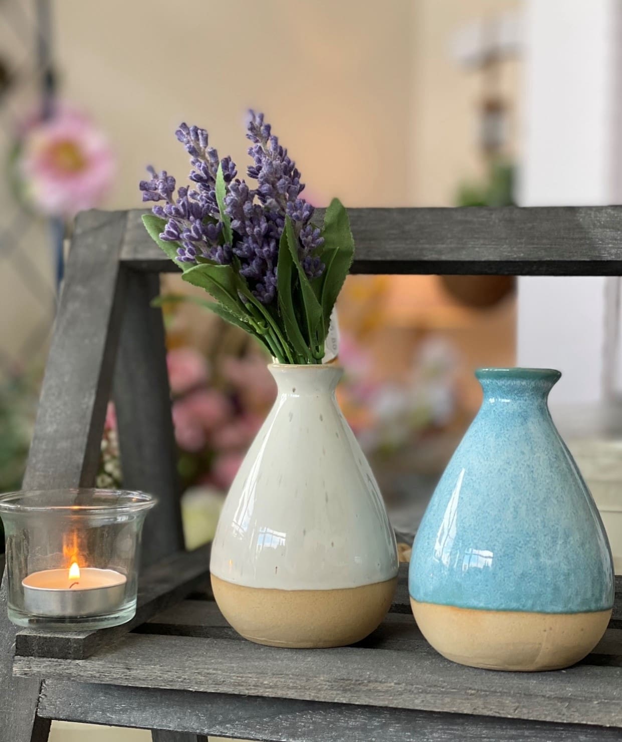 With the neutral bases and cool costal tones, these vases would add a touch of costal charm to your home decor.