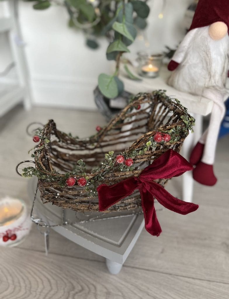 Rattan Sleigh With Red Bow & Berries