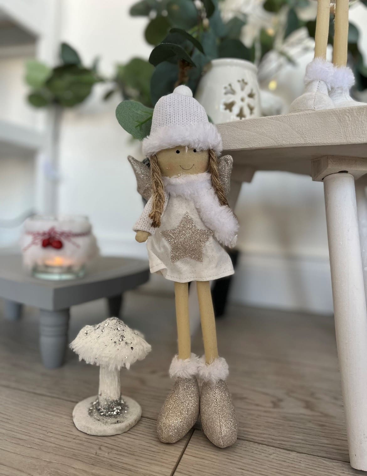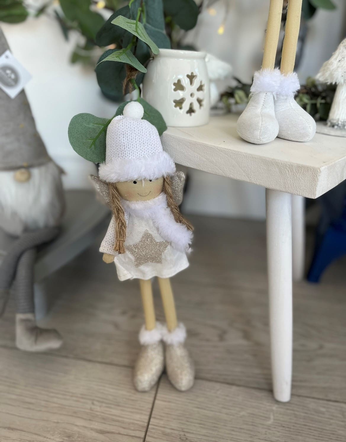 White Bunny Block With Ribbon and fluffy tail