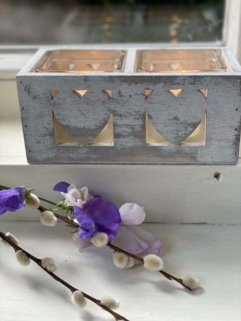 White Wooden Rustic Candle Holder