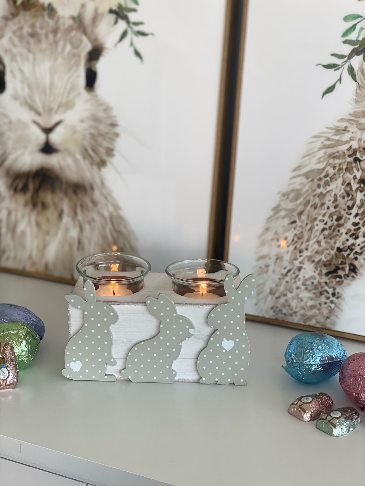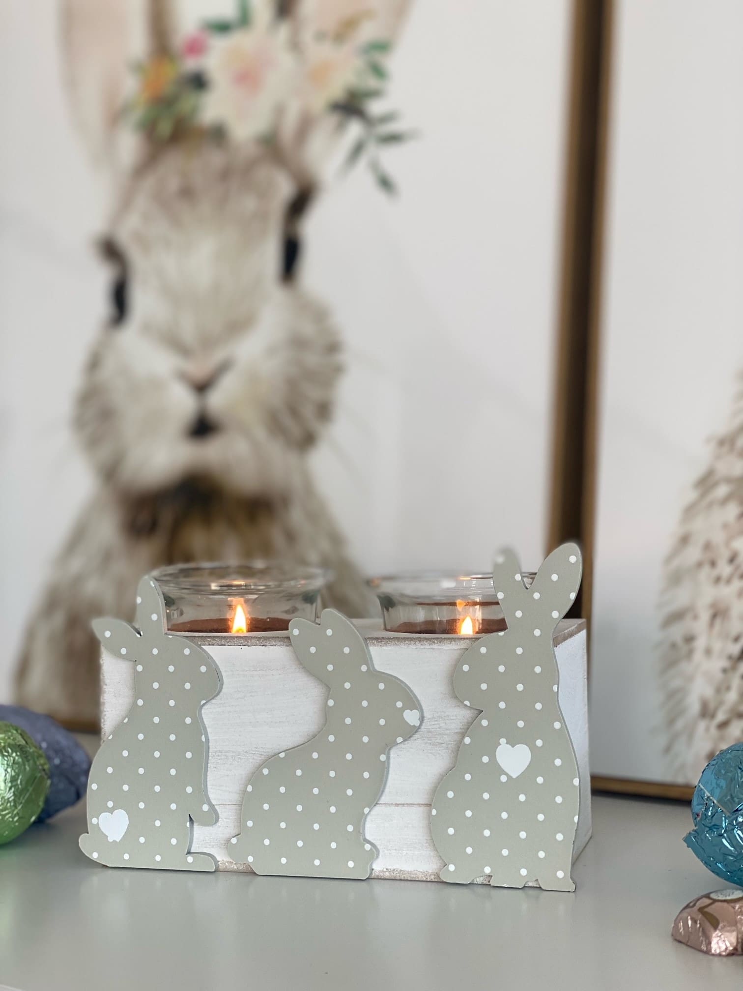 Wooden Bunny Tealight Holder Comes with Tealights Size : 14*7*7
