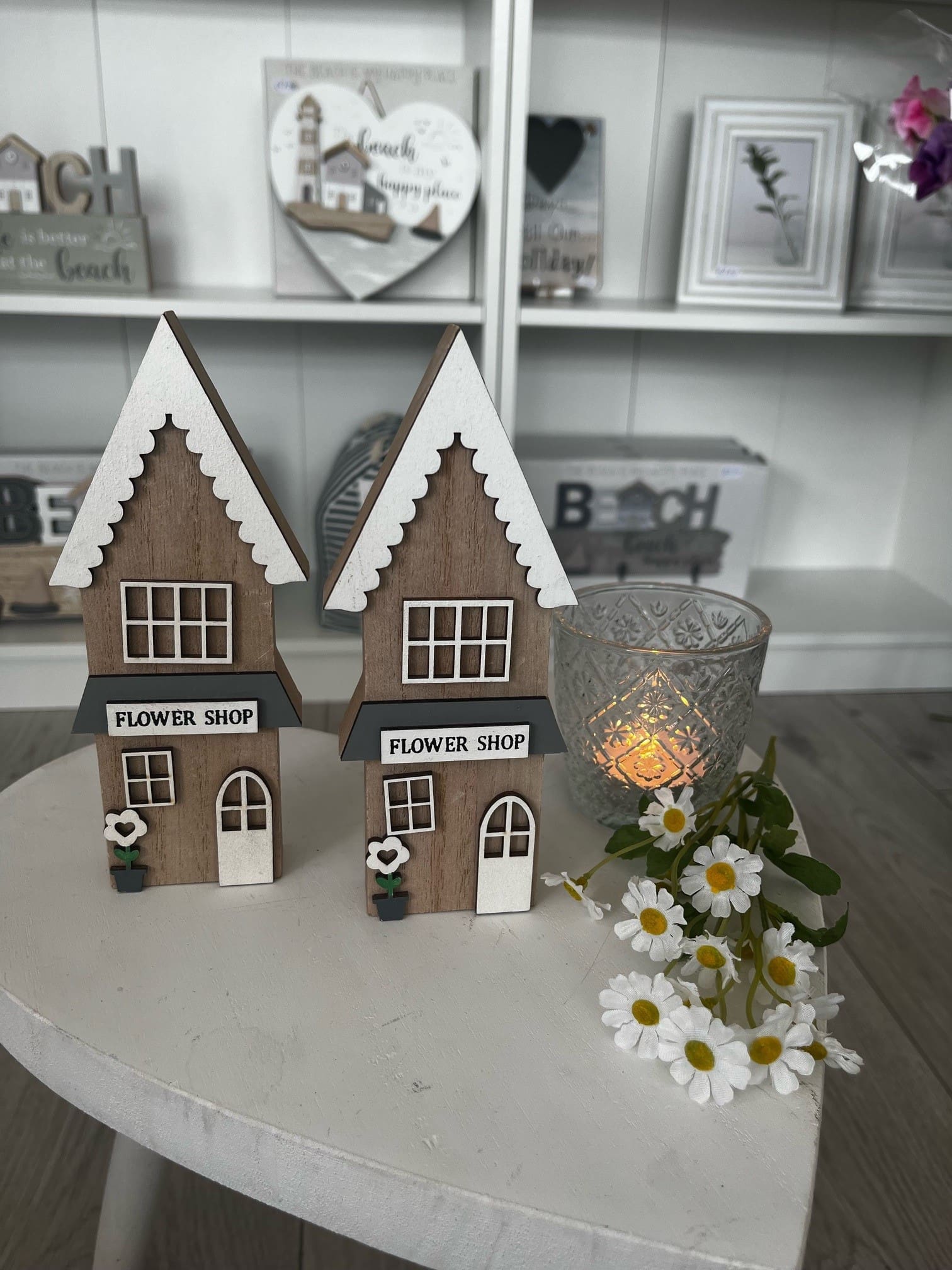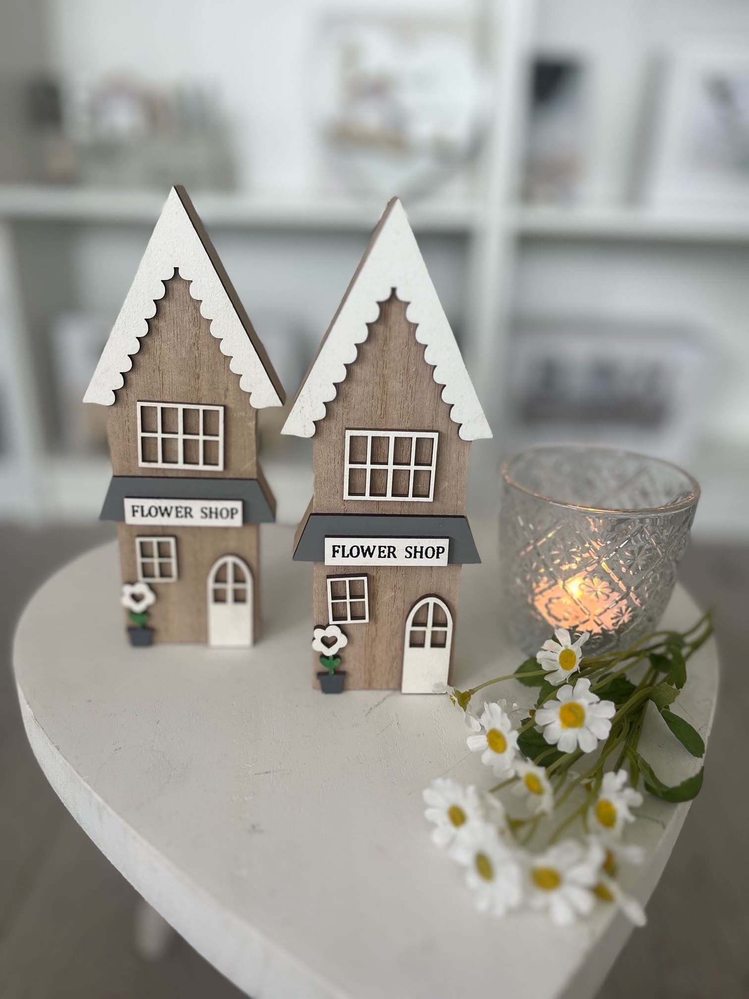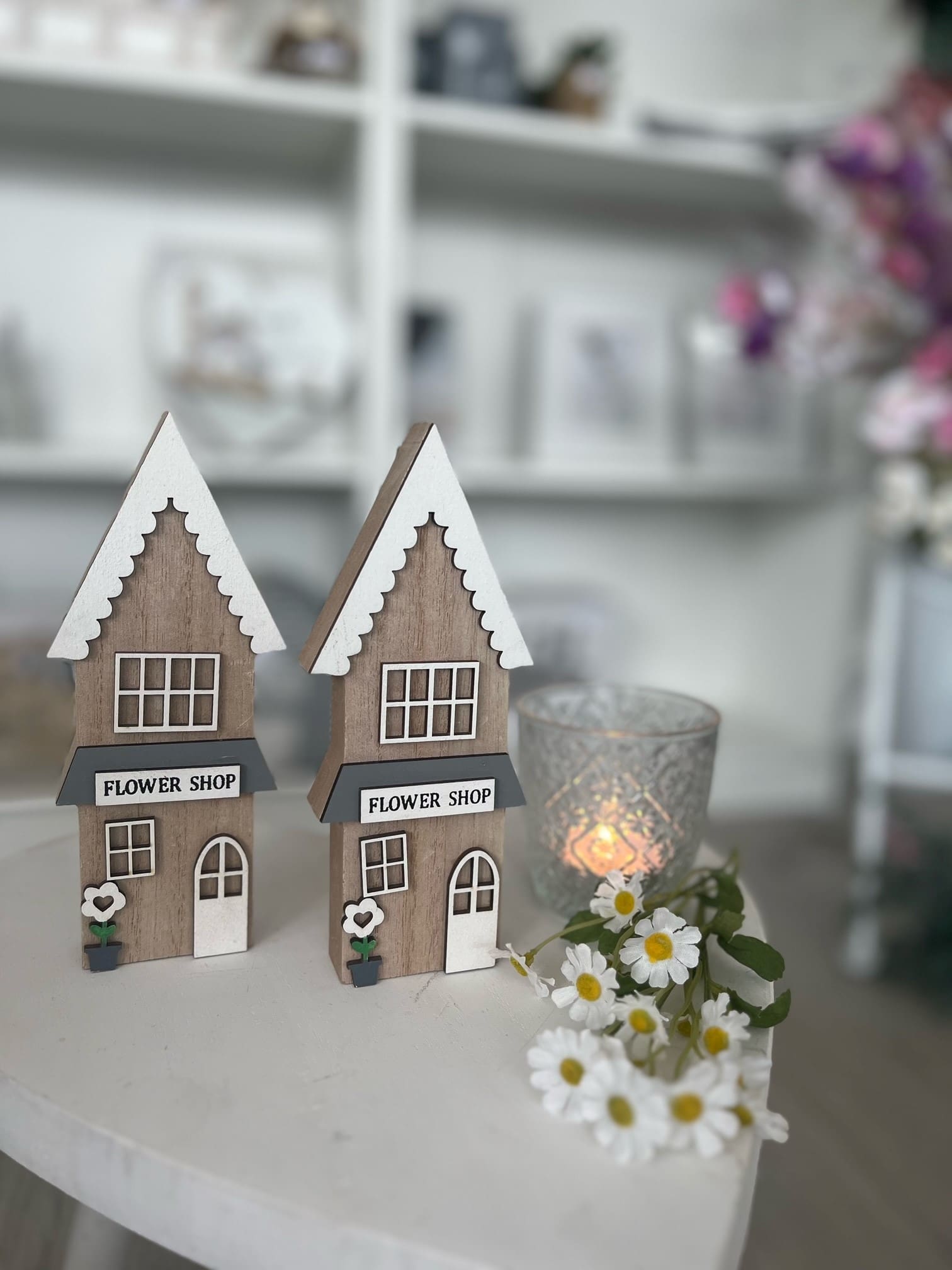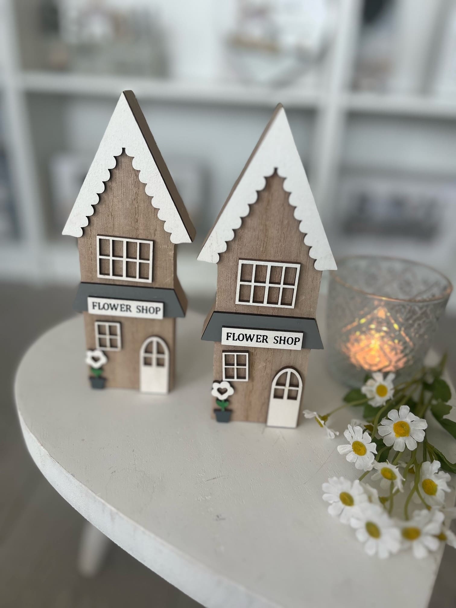 A very sweet wooden flower shop standing decoration Dimensions: 7x17cm