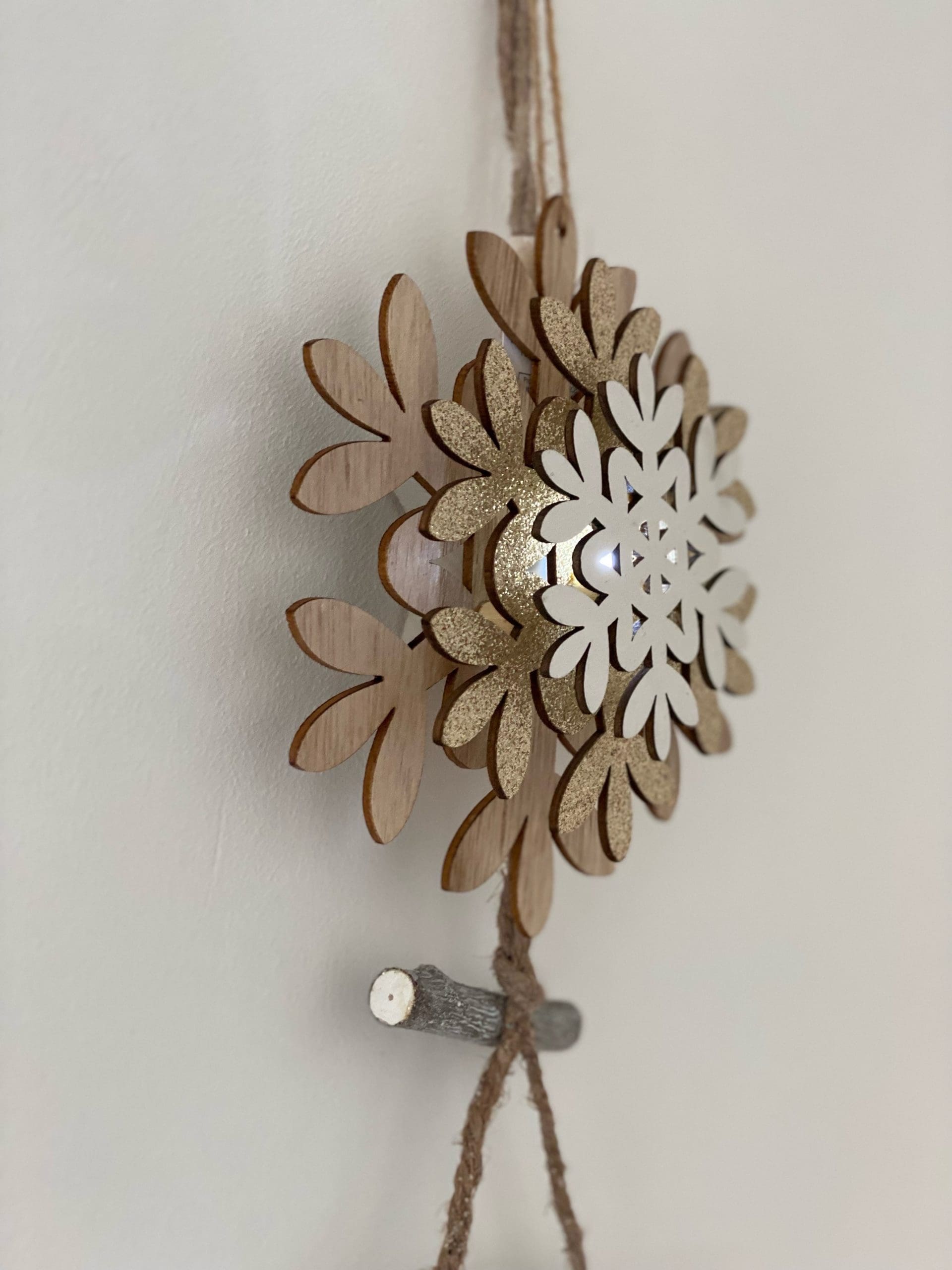 Wooden Light Up Snowflake Flower. Dimensions : 16×2.5×14.5cm Comes with battery