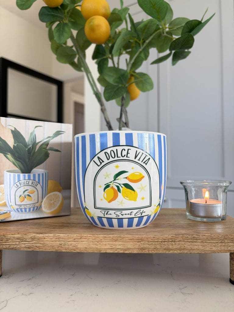 Blue Striped La Dolce Vita Plant Pot, H10.2cm x W11cm x D11cm
