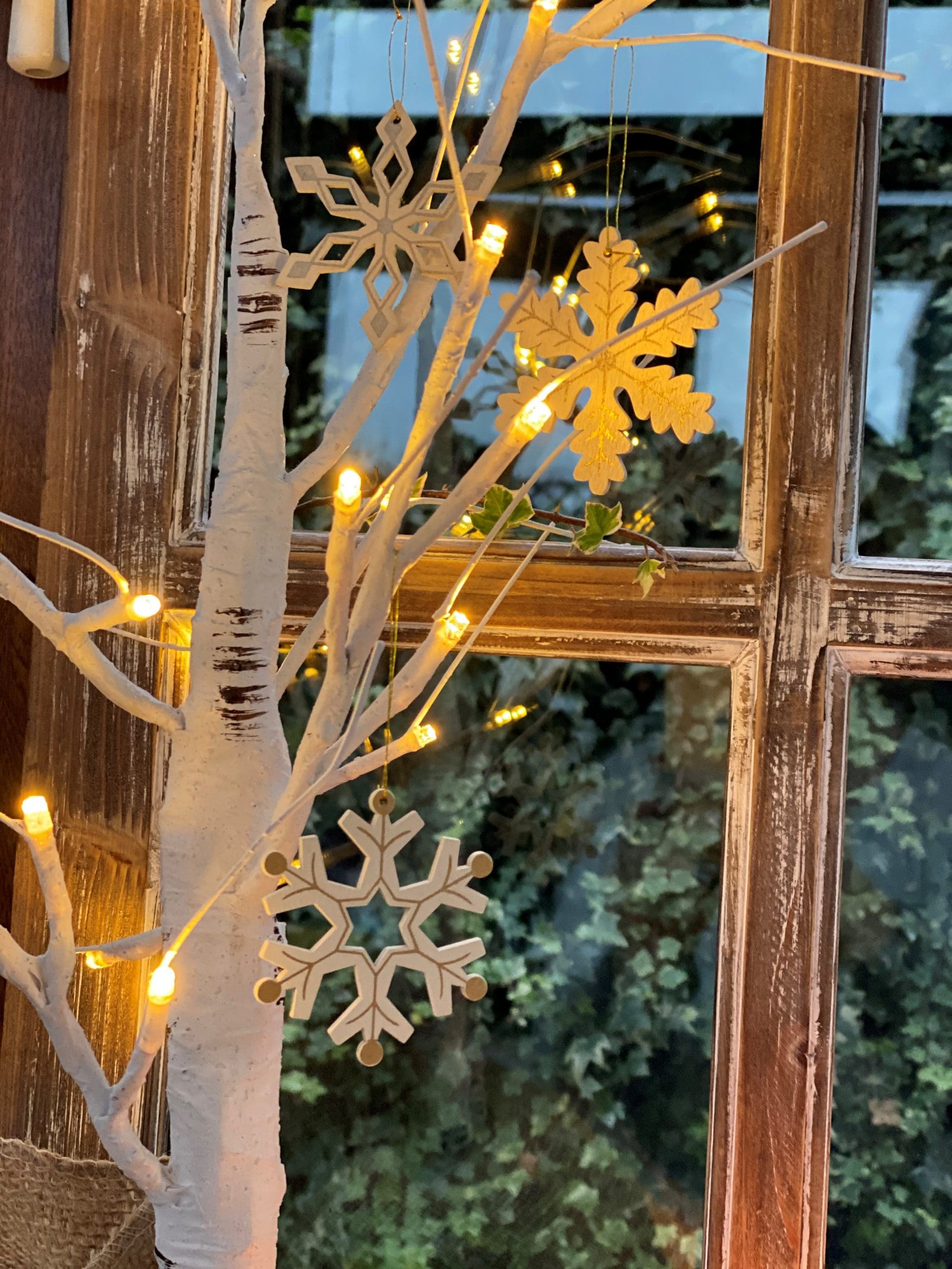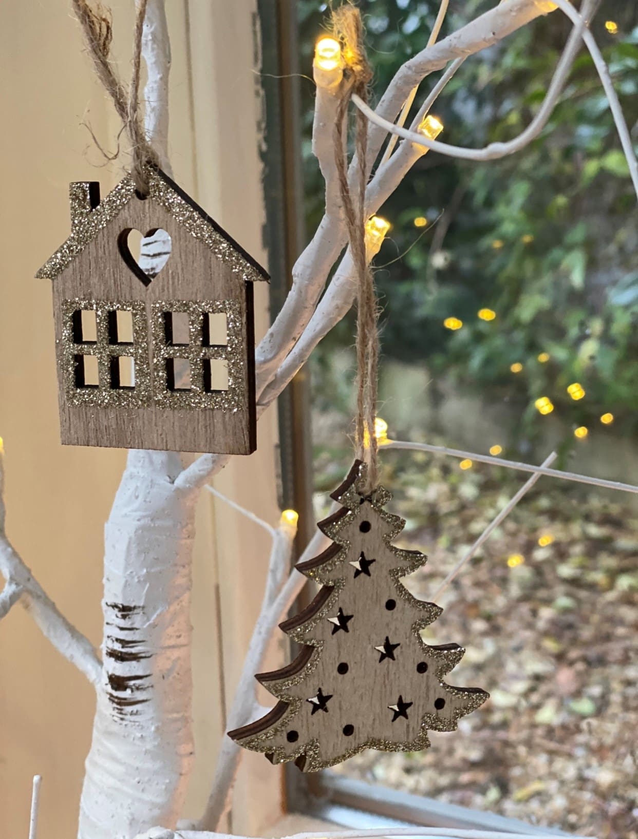 • Red Hanging Wooden Tree Star (Gingham Print)