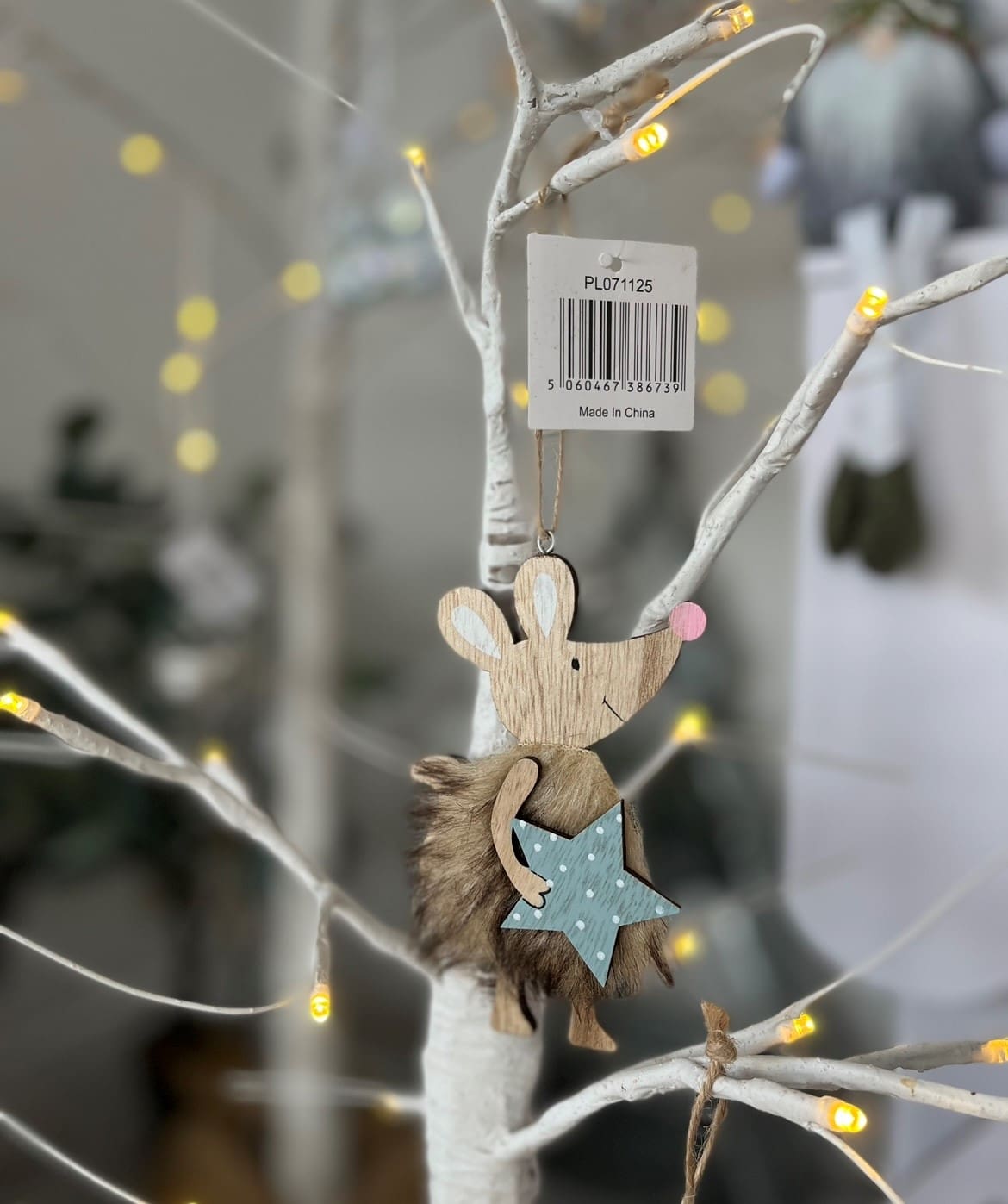 • RUSTIC WOOD MOUSE HANGER, 12CM